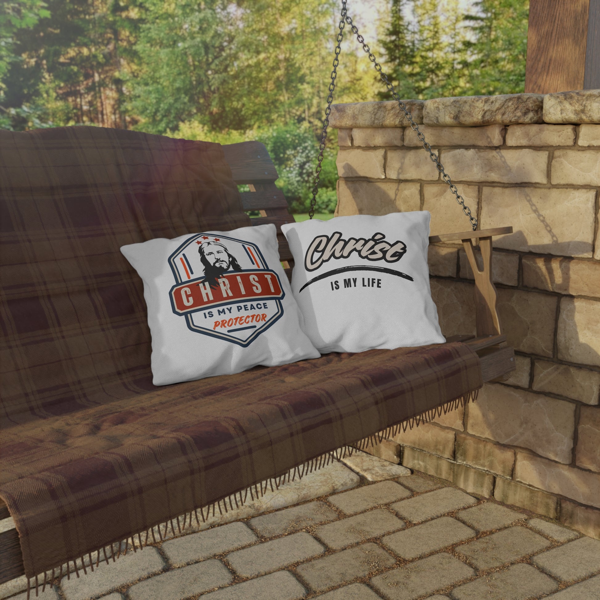 Christ is my Peace - Christ is my Life Pillows. These outdoor pillows featuring the words 'Christ is my Peace - Christ is my Life' offer a sense of tranquility and faith. Perfect for those looking to add a spiritual touch to their outdoor space, these pillows are ideal for Christians celebrating Easter, Christmas, or other religious holidays.