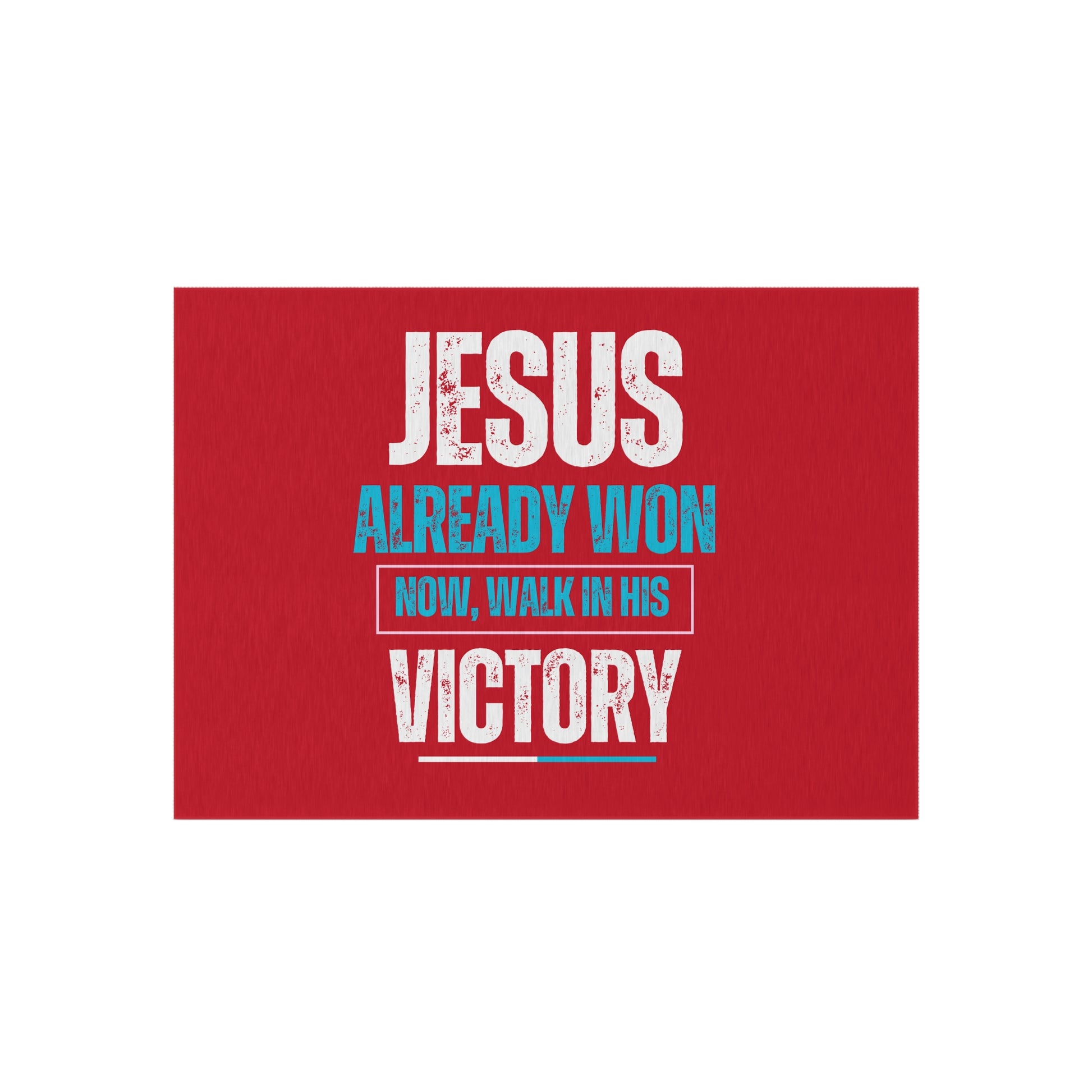 Jesus Already Won, Now Walk in His Victory Rug, Inspirational Outdoor Rug - Patio Decor, Faith-Themed Doormat, Outdoor Welcome Rug