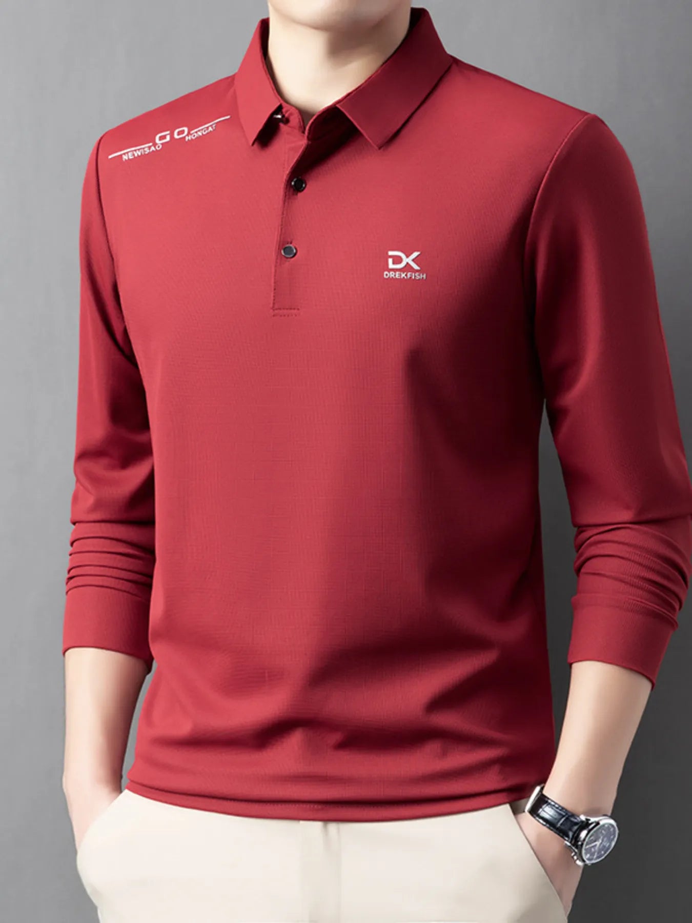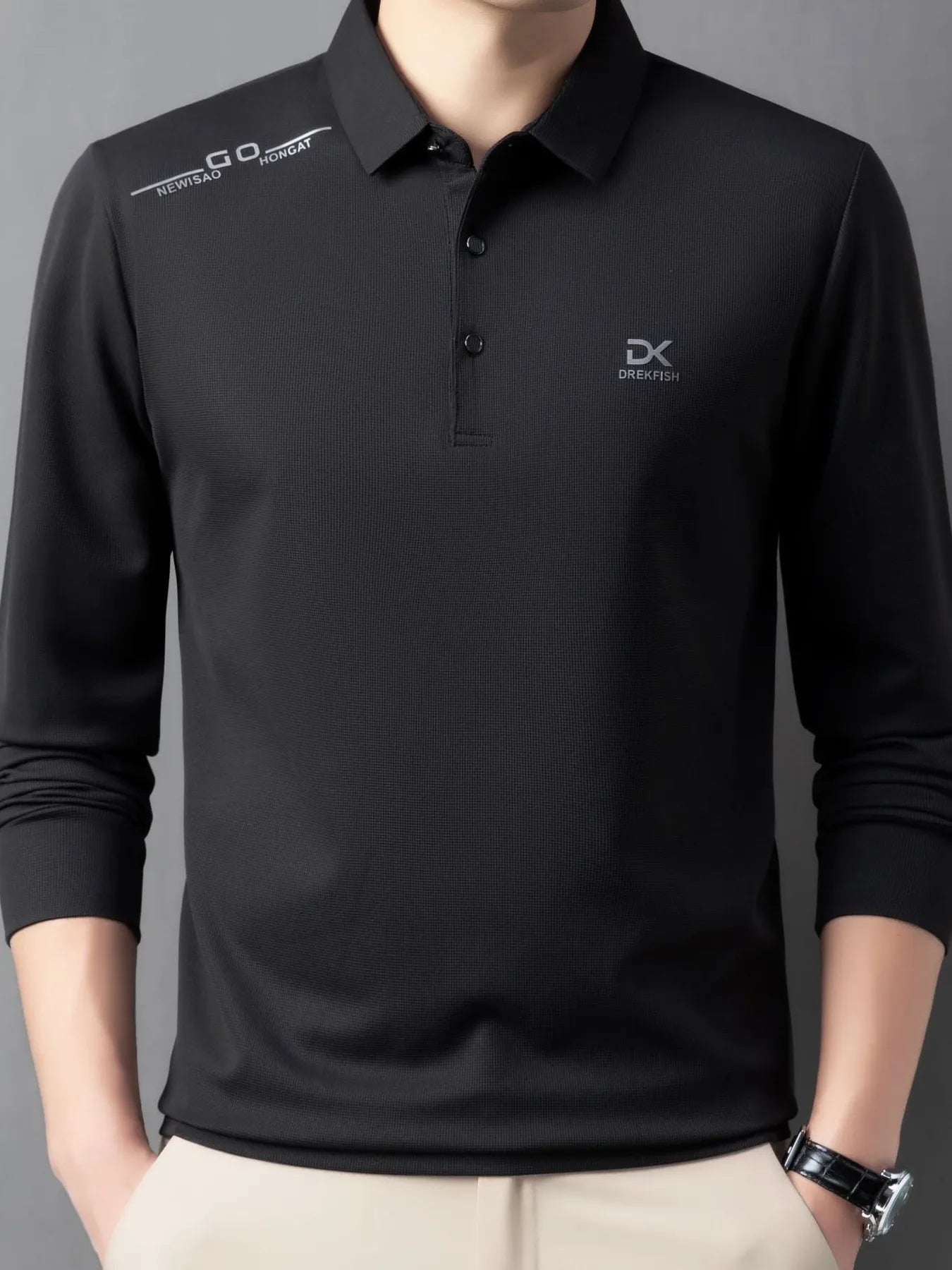 Men's Button Detail Long Sleeve Polo - Men's Shirt