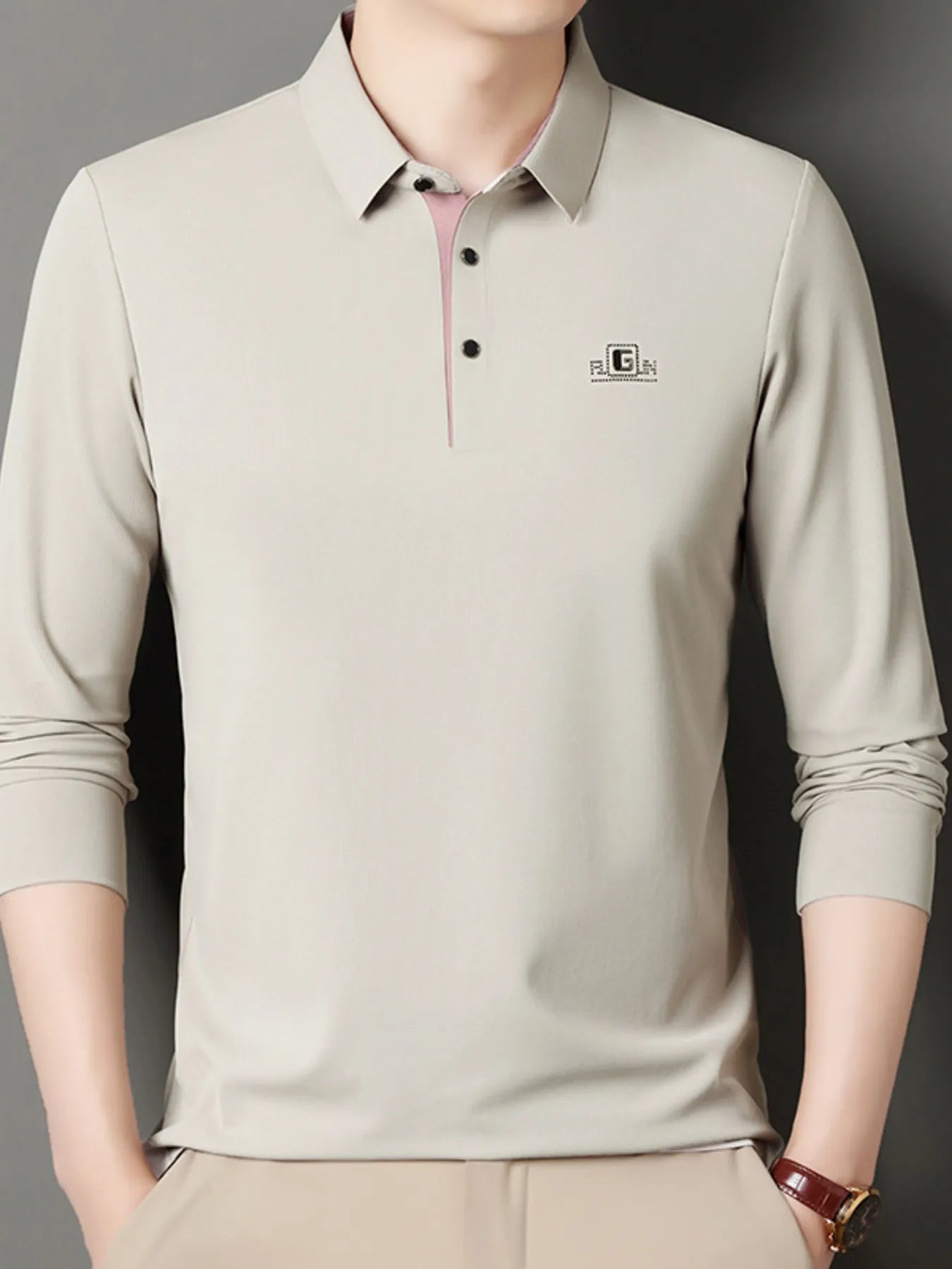 Men's Button Detail Long Sleeve Polo - Men's Shirt