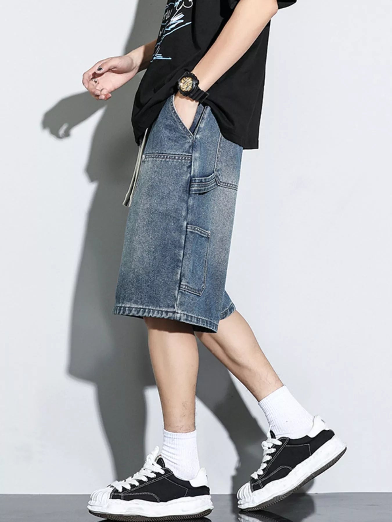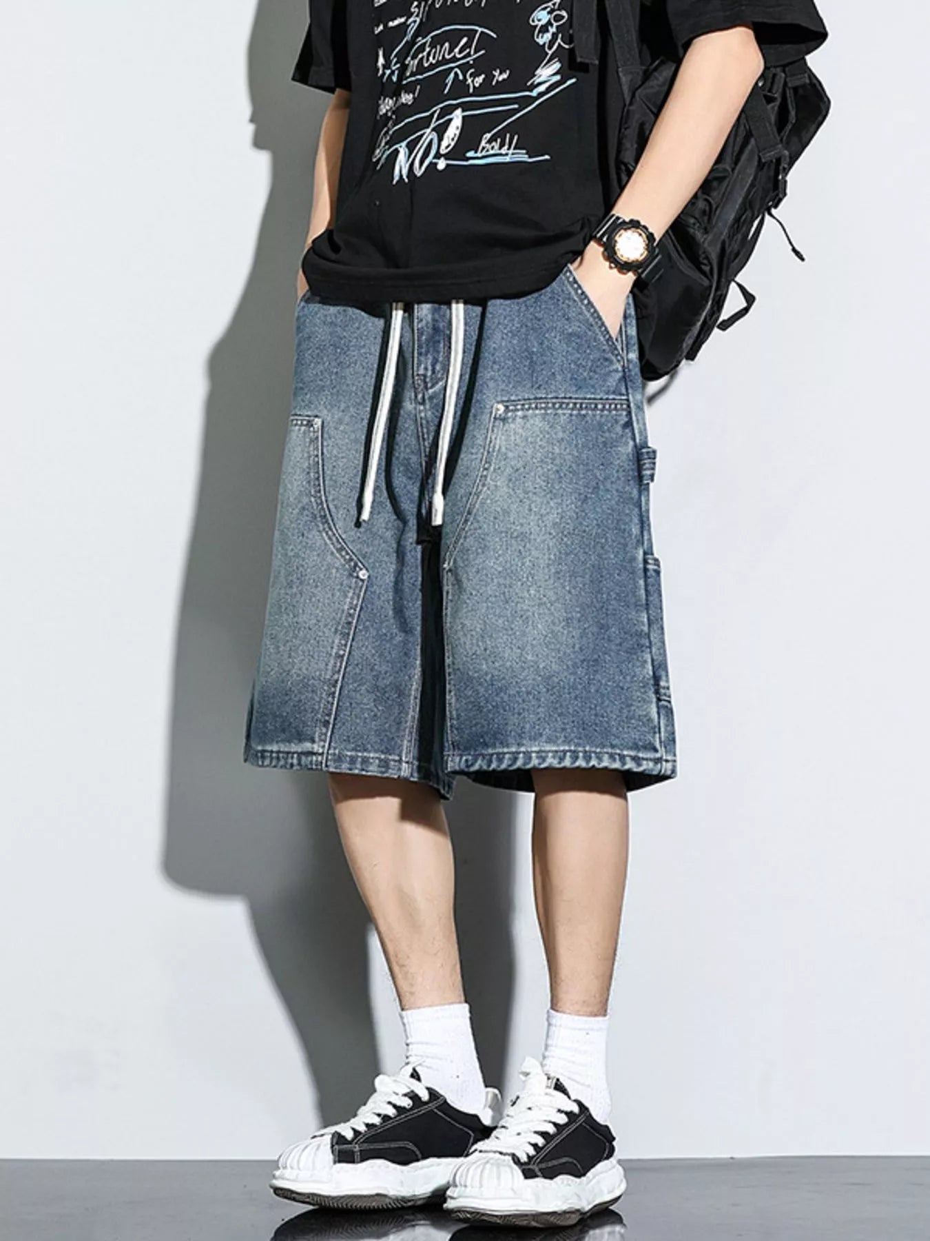 Men's Full Size Drawstring Wide-Leg Denim Shorts Plus Size - Men's Jeans Short