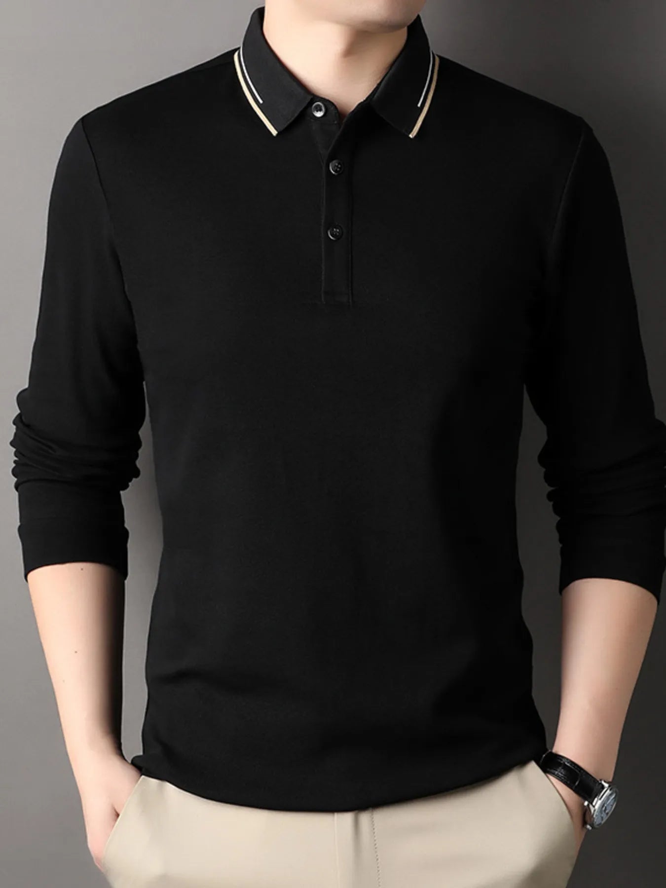 Men's Plus Size Collared Neck Long Sleeve Polo - Men's Shirt