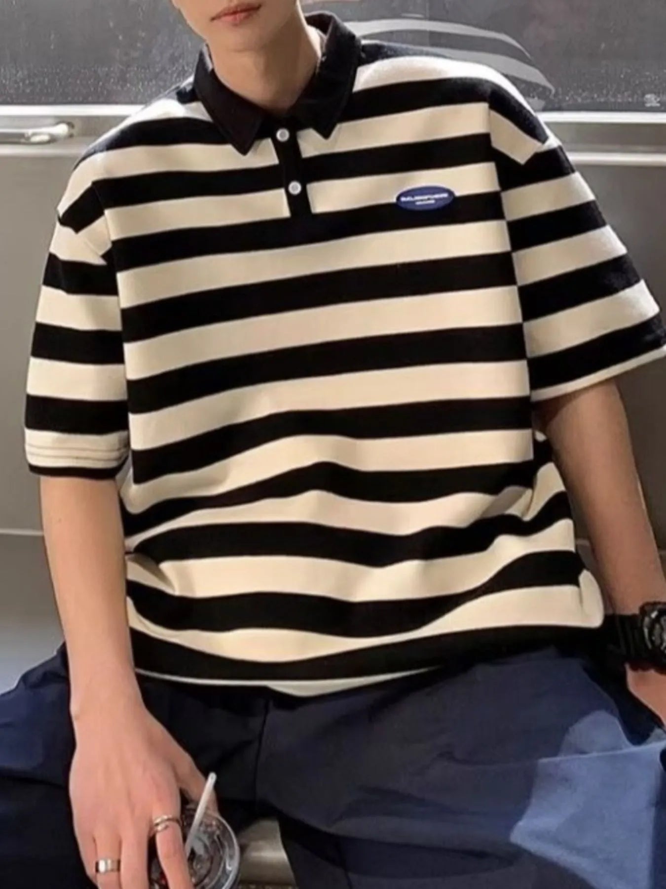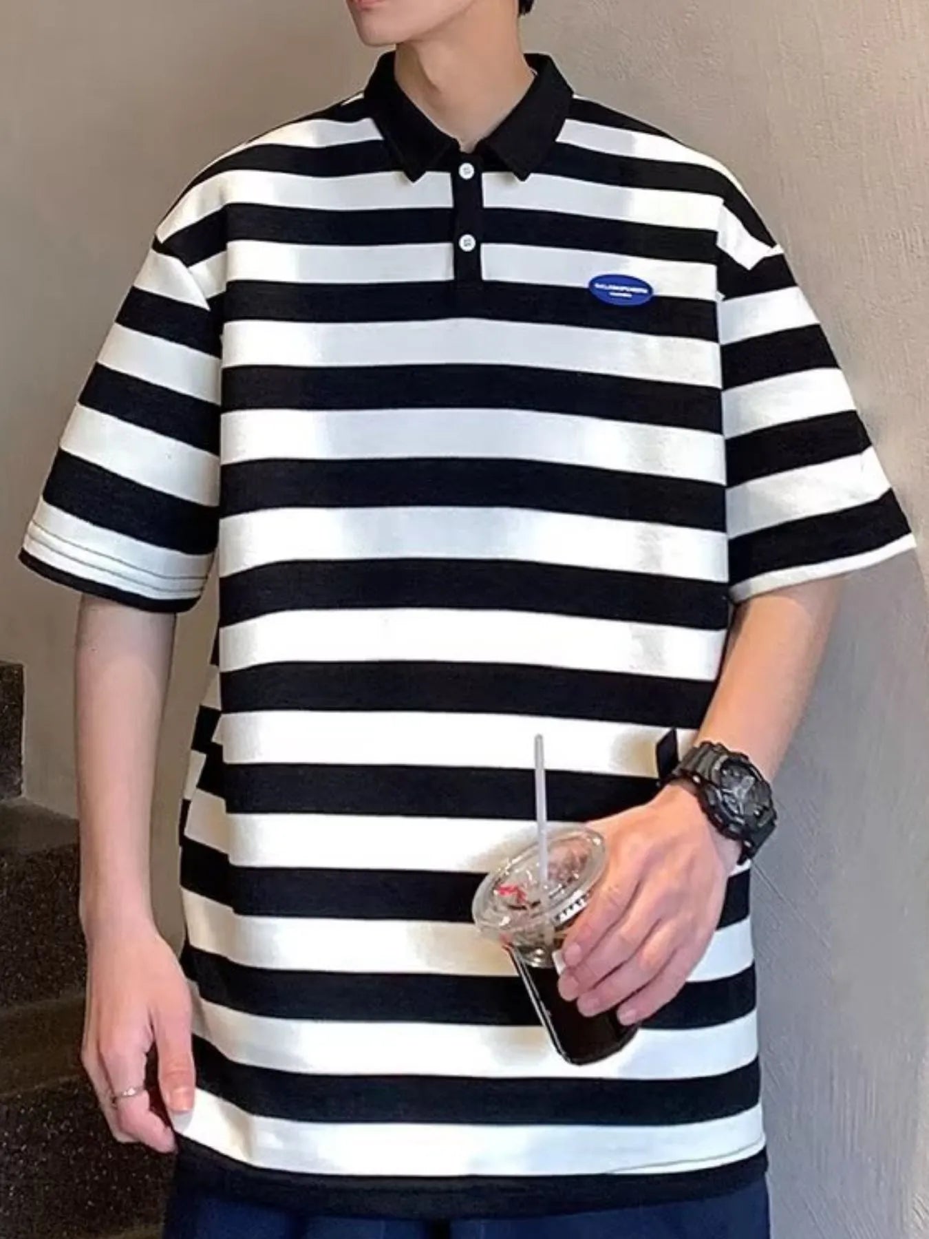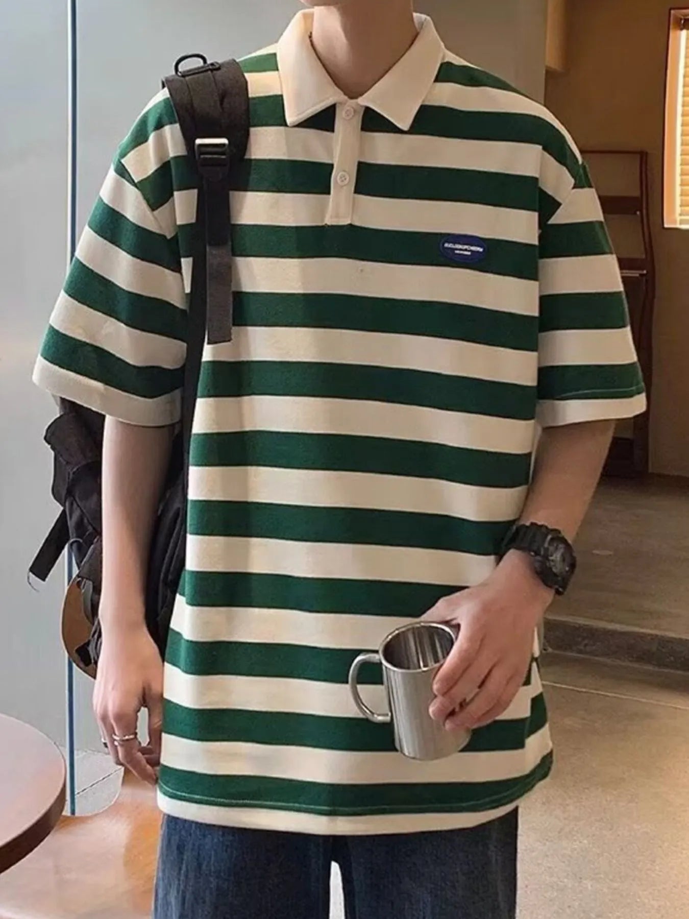 Men's Plus Size Striped Short Sleeve Oversized Polo - Men's Shirt