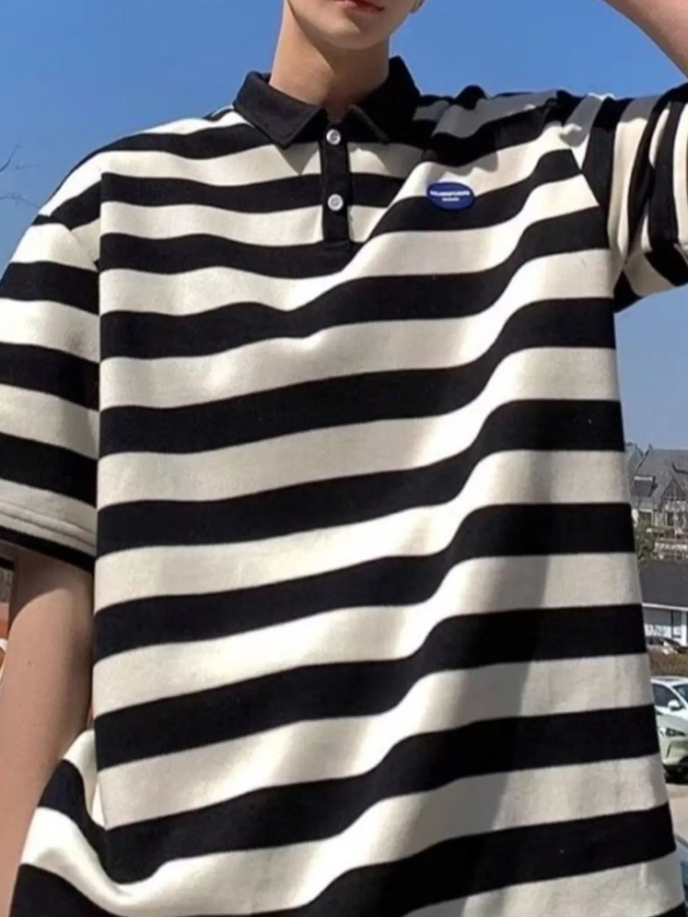 Classic stripes, relaxed attitude. This oversized polo brings everyday comfort with a modern drape, a clean buttoned placket, and breathable cotton-blend fabric—easy to dress up or down for work, weekends, and everything in between.
