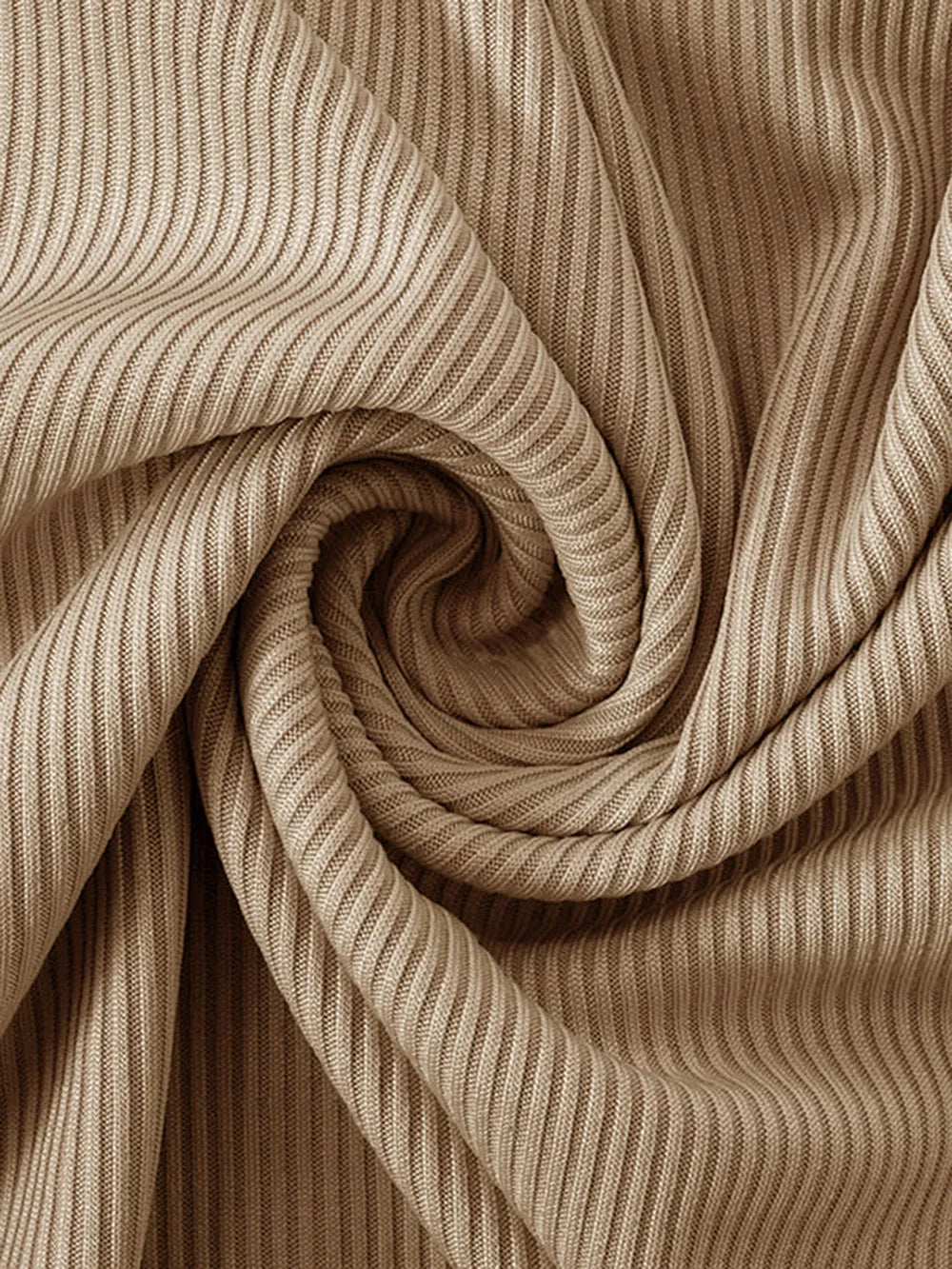 Holds color beautifully and resists everyday creasing; the ribbing enhances drape.